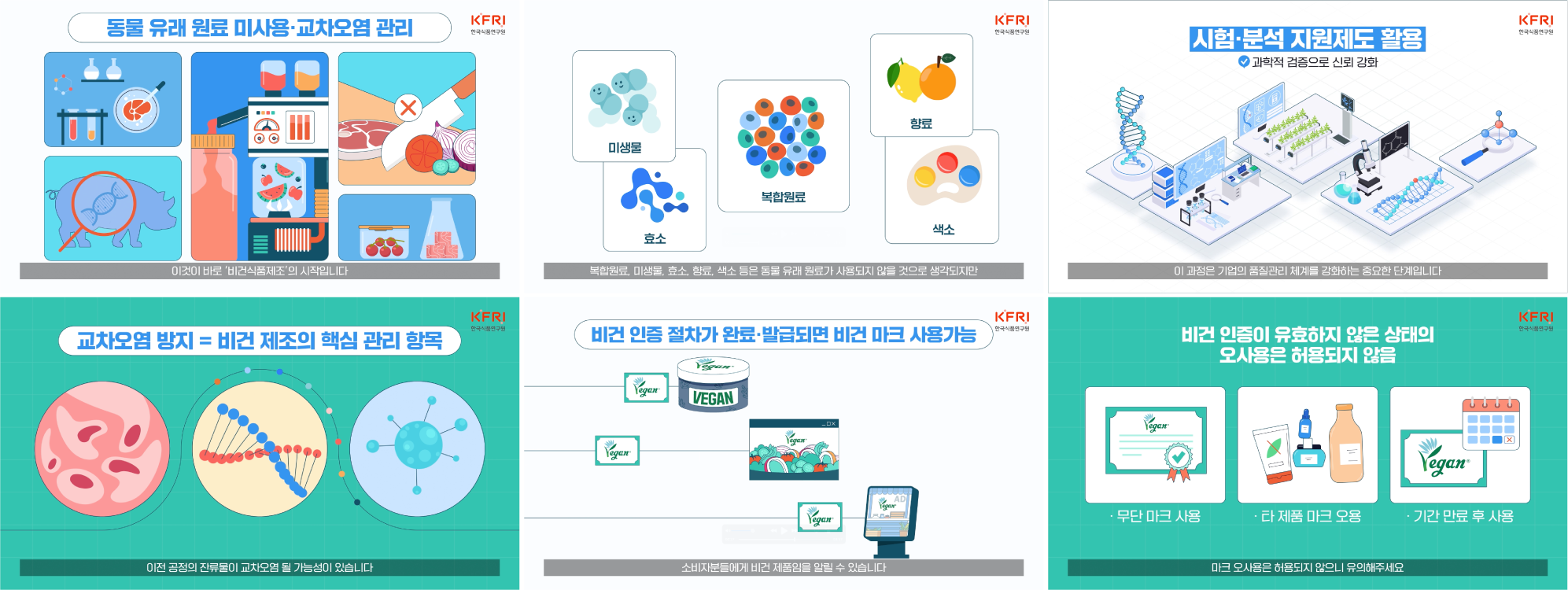 공정별 주의 사항을 단계별 인포그래픽으로 시각화하여 현장 실무자들의 오해를 줄이고신뢰도를 강화했습니다. 사후 관리와 지속적 개선의 중요성을 강조하며K-비건 식품의 세계적 경쟁력을 높이기 위한 품질 기준을 제시했습니다.
