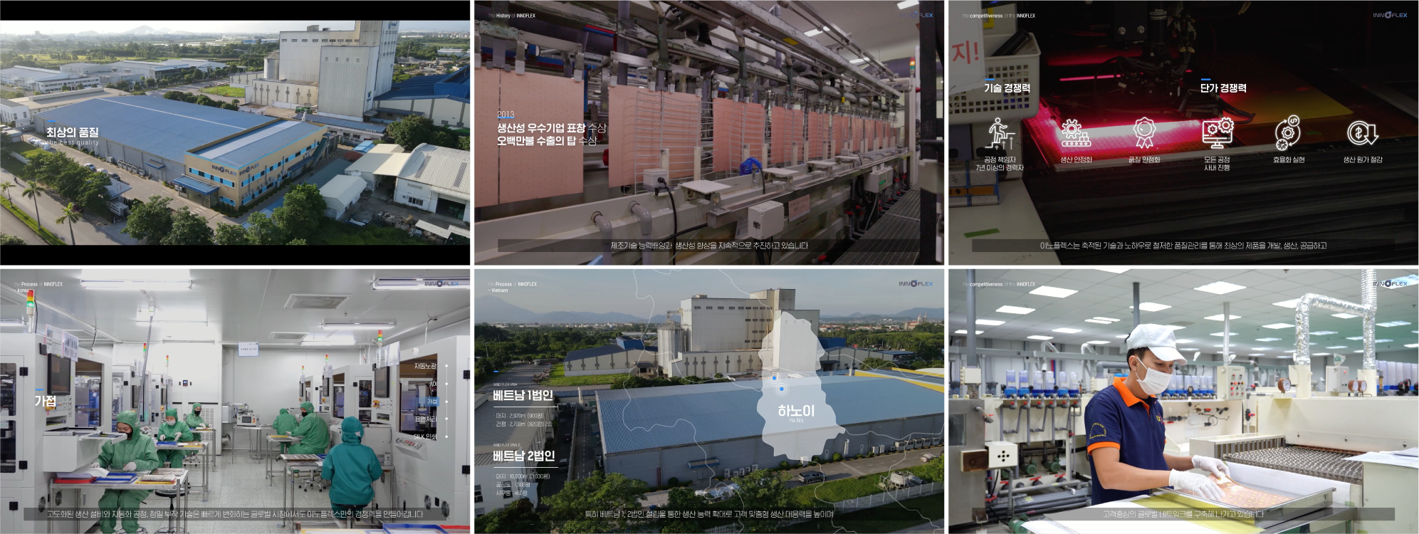 기업의 이념부터 주요 제품, 생산 설비가 잘 드러날 수 있도록 영상을 구성하고베트남 현지 법인 촬영 소스를 적절히 활용 및 편집하여글로벌 기업으로서 홍보효과에 도움이 될 수 있도록 제작했습니다.