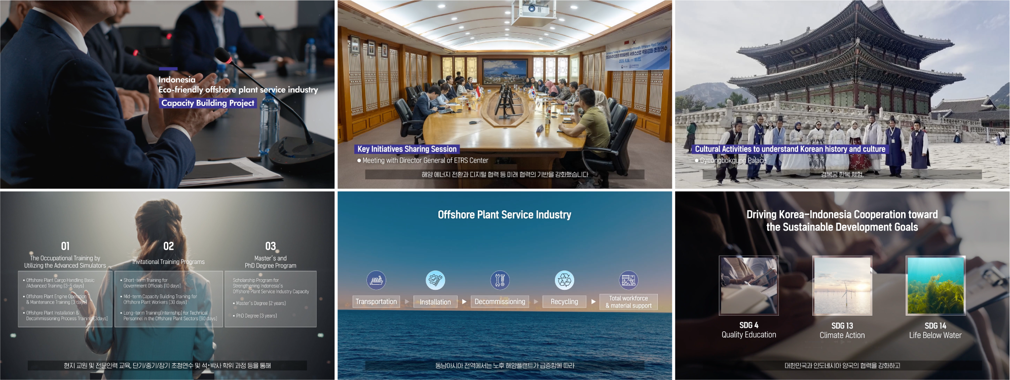 한국해양대학교가 진행하고 있는 사업의 목표와 내용이 무엇인지이를 위해 어떤 세부 프로그램과 내용으로 구성되어있는지 등정보 전달이 잘 될 수 있도록 영상 소스와 현장 사진/영상 자료를 활용하여 작업했습니다.