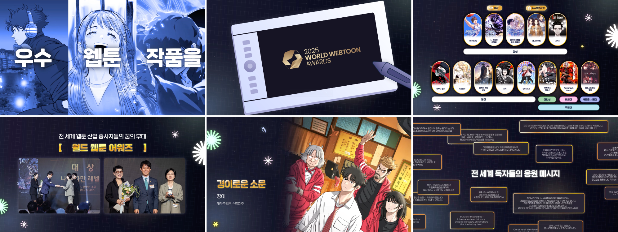 글로벌 웹툰 시상식의 위상을 화려한 모션 그래픽으로 잘 표현해주셨습니다.' -이OO주임-