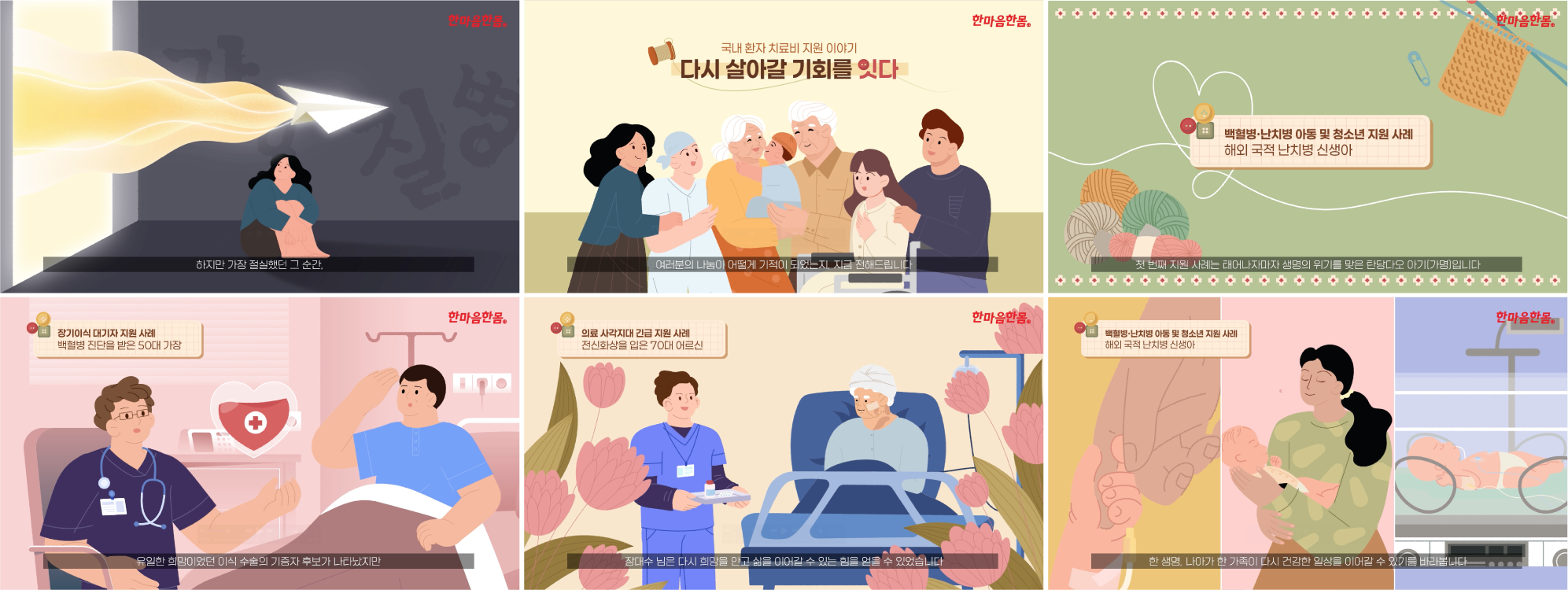 막막한 상황에 놓인 환우들의 실제 지원 사례를 감성적인 일러스트로 재구성했습니다.