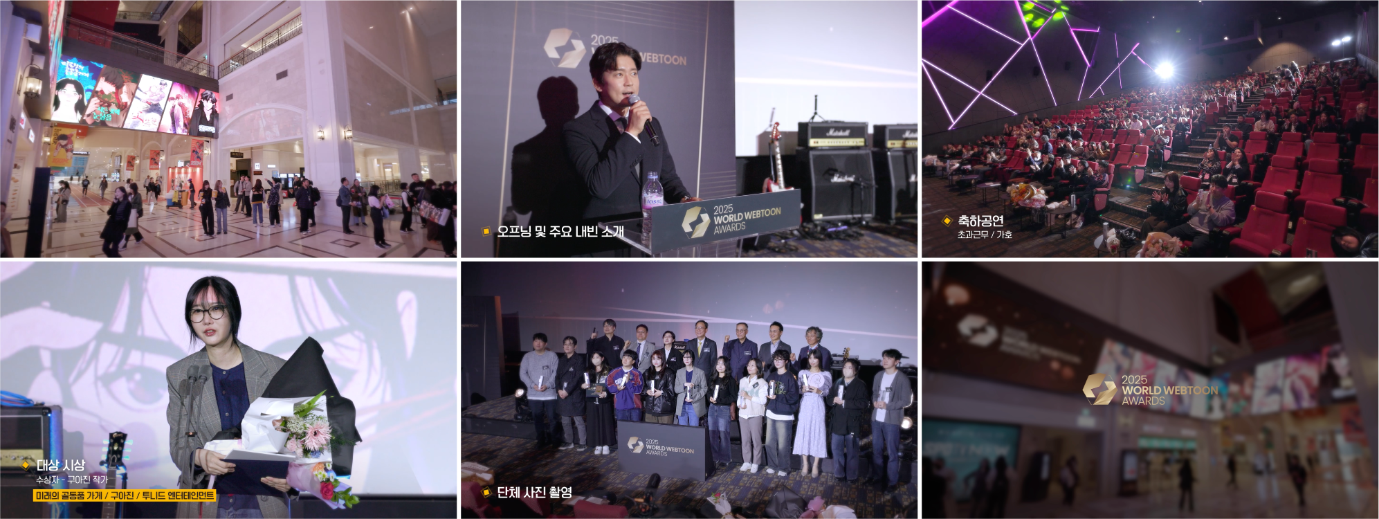 2025 월드 웹툰 어워즈 현장의 열띤 분위기를 감각적으로 기록했습니다.창작자들과 팬들의 교감, 영광스러운 수상의 순간들을 담아 현장감을 높였습니다.시상식 전반의 흐름을 속도감 있게 재구성하여 역동적인 아카이브 영상으로 완성했습니다.